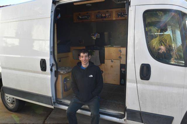 But for six months a year, Honnold spends his life on the road in a RAM ProMaster cargo van. It’s equipped with a three-burner stove, and a horizontally positioned mattress across the back of the van. It has all the equipment necessary for the athlete often described as the world’s best mountain climber.