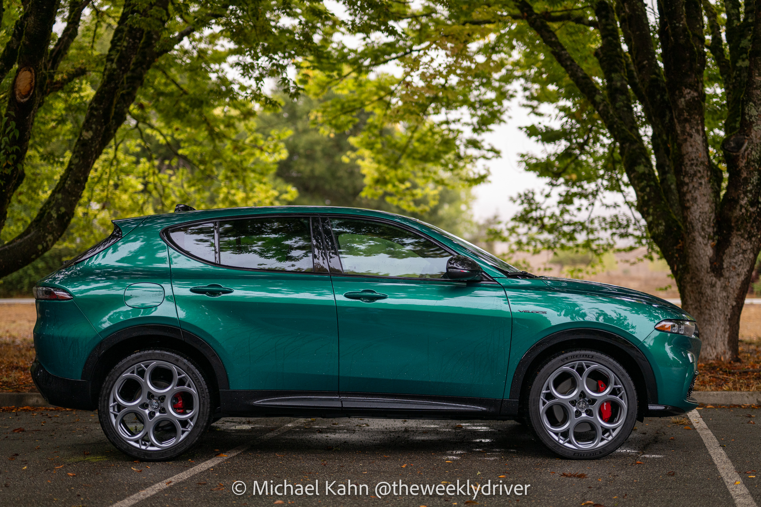 Aluminum steering column-mounted paddle shifters provide tactile engagement, while Verde Green Fangio Metallic paint ensures the Tonale never fades into parking lot anonymity, as pictured above.