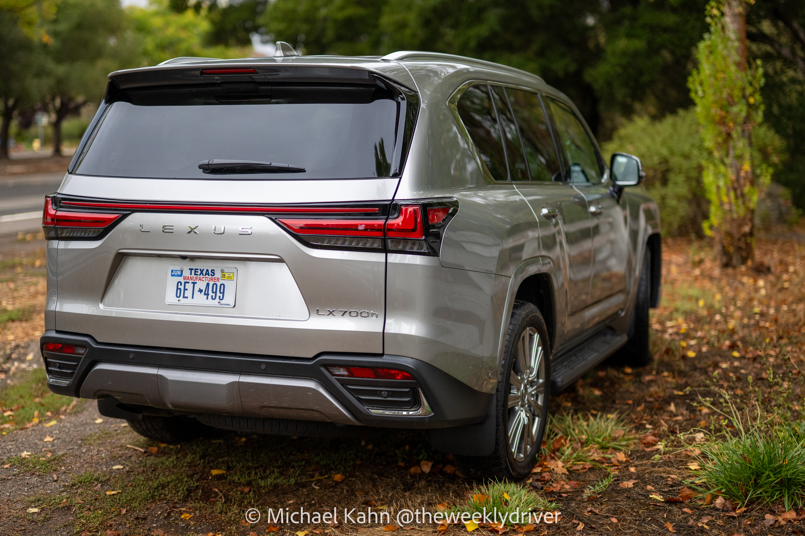 Twenty-two-inch forged alloy wheels, triple beam LED headlamps, power moonroof with roof rails, and power rear door with kick sensor define exterior appointments.